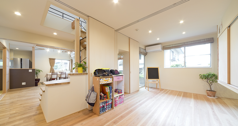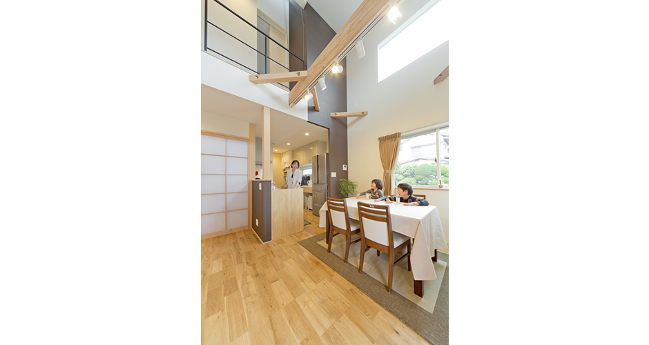 一つ一つの窓から風景や自然光も考え風も通り、気持ちの良い季節は窓を開けて、そよ風を感じながら、まったりとくつろげます。忙しいご主人は休日には、ここで究極の癒しを感じていただき、奥様には機能性重視であるキッチンや水周りの使い勝手により時間を有効に使っていただけます。そして、親子のコミュニケーションを取りやすい間取りにより、子供のしつけや教育に関しても充実した仕組みになるよう計画しました。