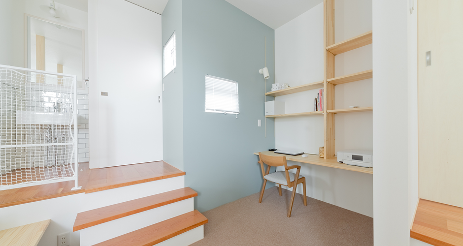 スキップフロアはお子様が大好きな電車のおもちゃを広げて豪快に遊べるスペースに。