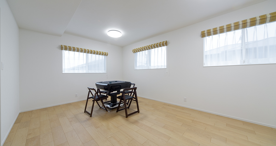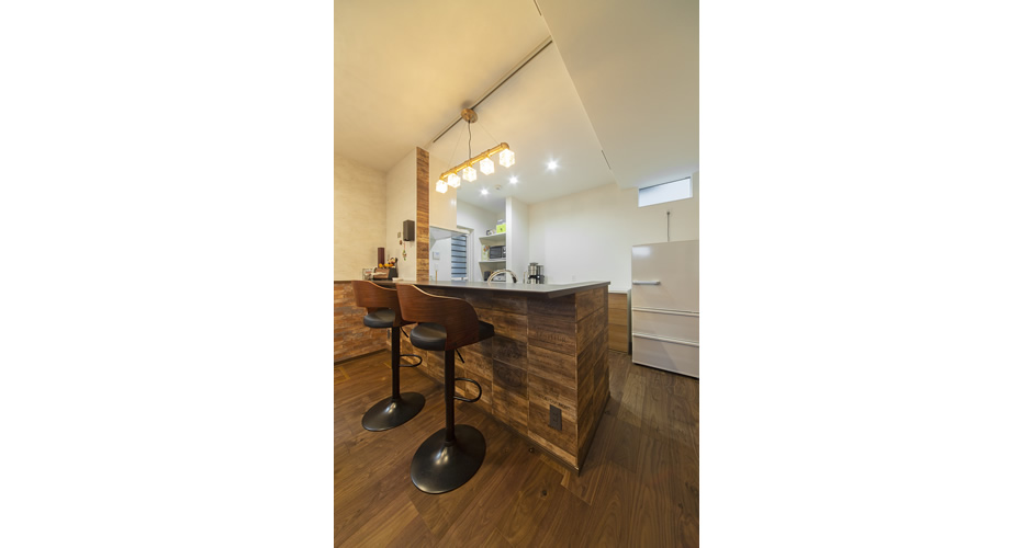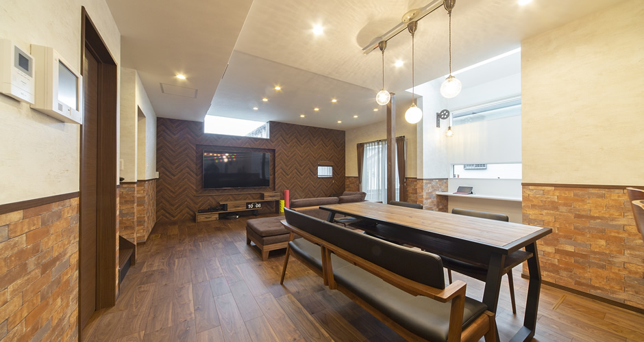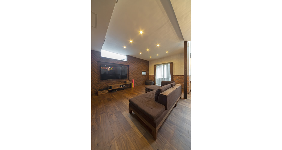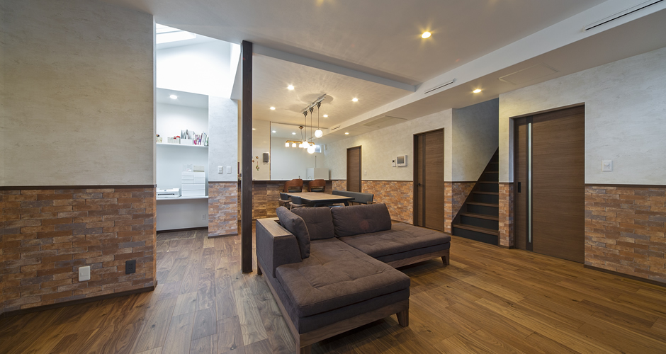 2階のフリースペース(ご主人スペース)は、レンガタイル柄で重厚感が増し、ご主人のこだわりを感じます。