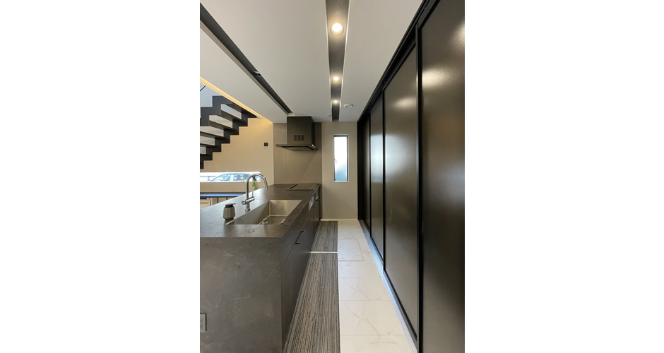 リビングと全ての空間との繋がりを拘り設計させて頂きました。