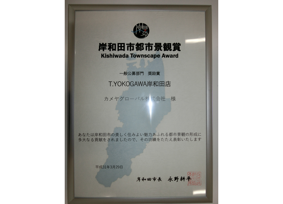 この度当社が誘致&施工させて頂いた『T.YOKOGAWA 岸和田店』が一般公募部門の奨励賞に輝き、
