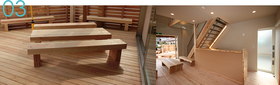 無垢材と自然素材の柔らかい薫りと木の感触。優しくあたたかい住空間を作り出す素材。