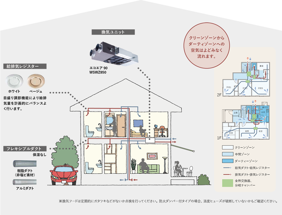 ●給気・排気ともに機械で行うことで、より確実な換気が可能